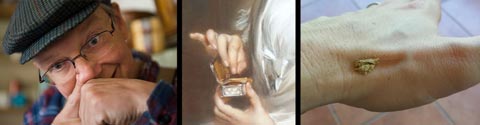 index finger, or held by a small snuff